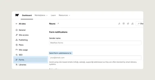 To change the favicon, email for getting form submissions, and other global settings, go to Site Settings from your Webflow dashboard or inside the project screen. There you can also manage custom domains, SEO settings, and backups. These settings apply to the entire project, not just individual pages.